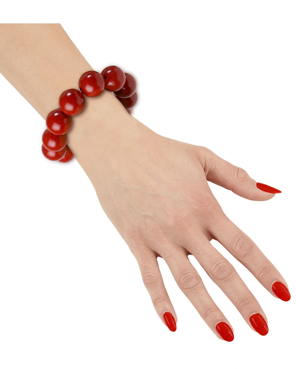 Die roten Perlen sind auf ein Gummiband befestigt, dass so ein bequemes An- und Ablegen des Armband ermöglicht. Das 70er Jahre Perlenarmband ist ein fantastisches und vielseitiges Kostümzubehör und findet so seine Verwendung nicht nur im Fasching & Karneval.