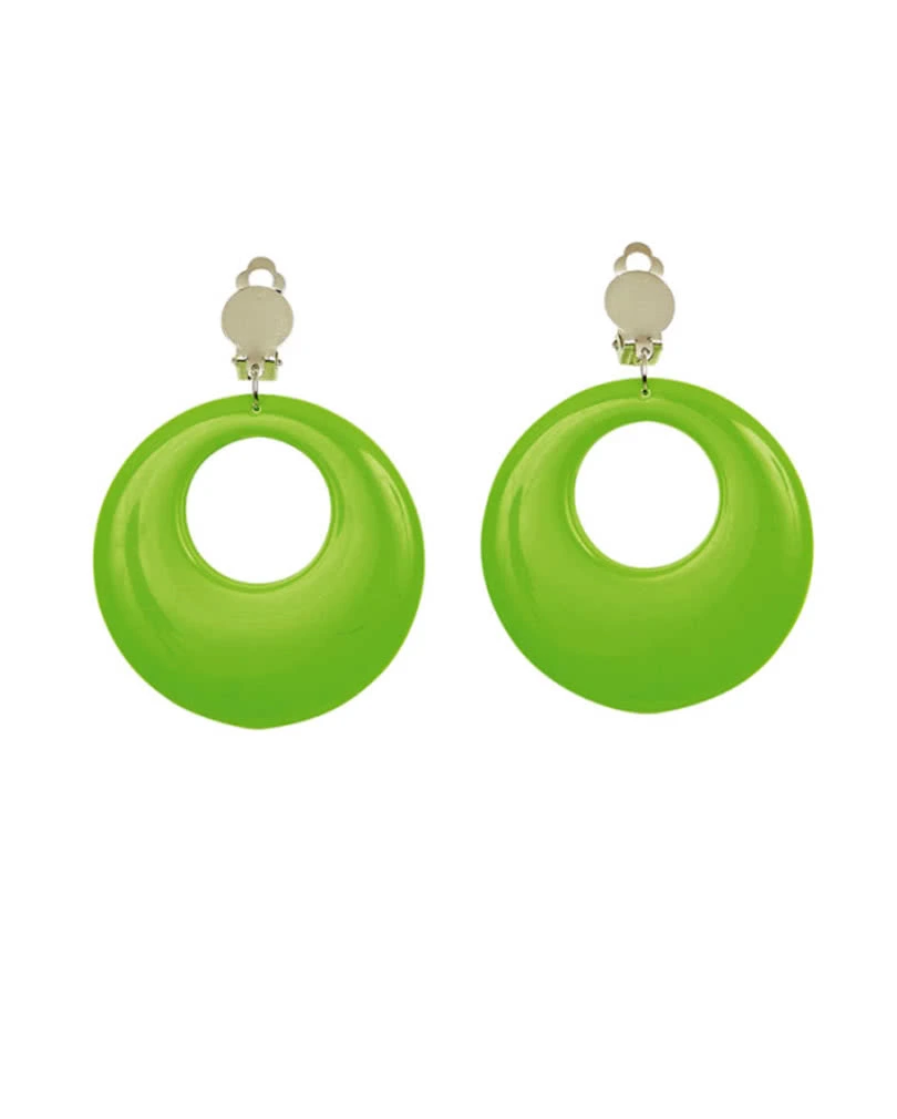 Bestelle Dir jetzt deine neongrünen 80er Jahre Ohrringe aus farbigem Kunststoff und schmücke dich wie Madonna oder Cindy Lauper. Die Kunststoffohrringe haben einen Clips und werden damit einfach am Ohrläppchen befestigt. besorge dir doch noch unser 80er Jahre Aerobic Kostüm als ultimatives Sportdress der 80´s
