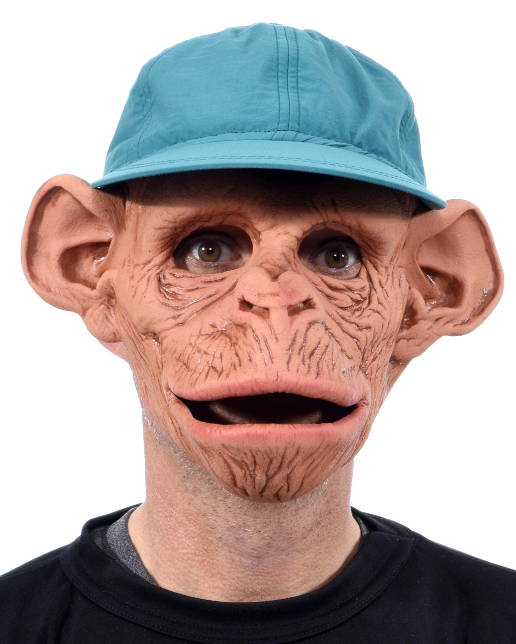 Schimpansen-Maske mit beweglichem Kiefer & Baseball Mütze