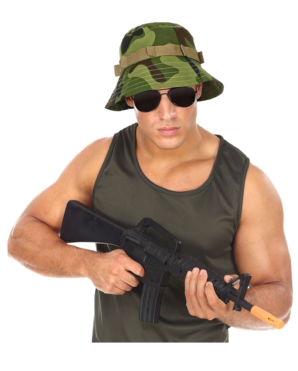 Camouflage Fischerhut mit Krempe als Kostümzubehör