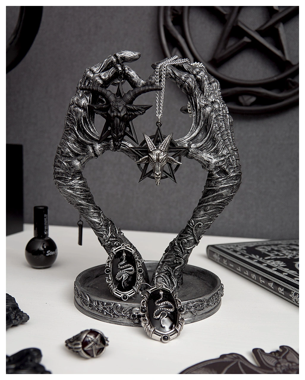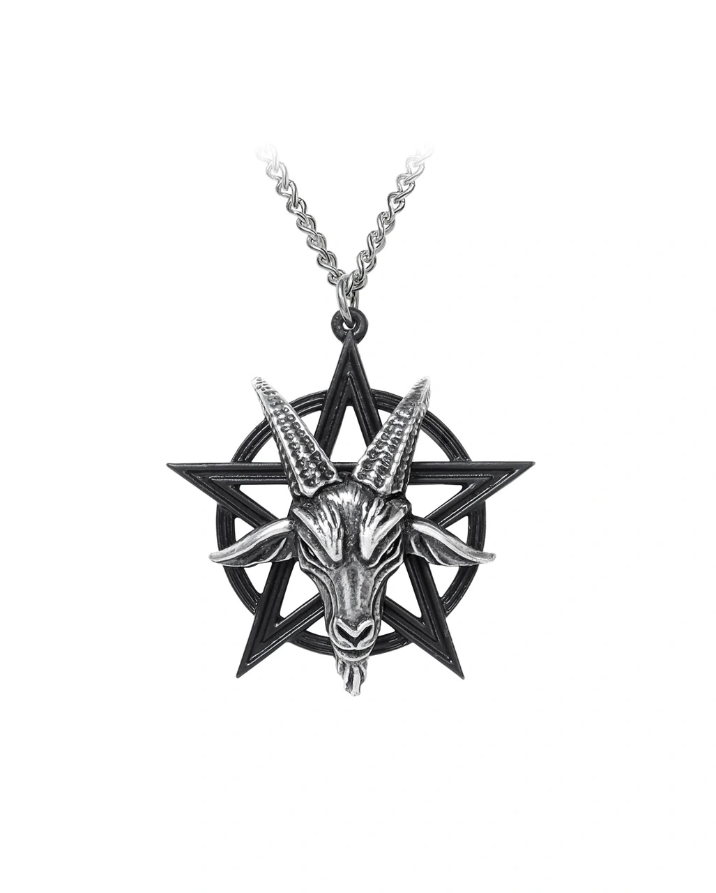 Dieser Baphomet Pentagramm Anhänger mit Kette verleiht jedem Outfit das gewisse “Etwas”. Du bekommst den Baphomet Halsschmuck in Form eines auffälligen Pentagramm-Anhängers mit satanischem Ziegenkopf – nicht nur modisch ein absolutes Highlight. Auch als Geschenkidee sorgt dieser okkulte Modeschmuck für Begeisterung.