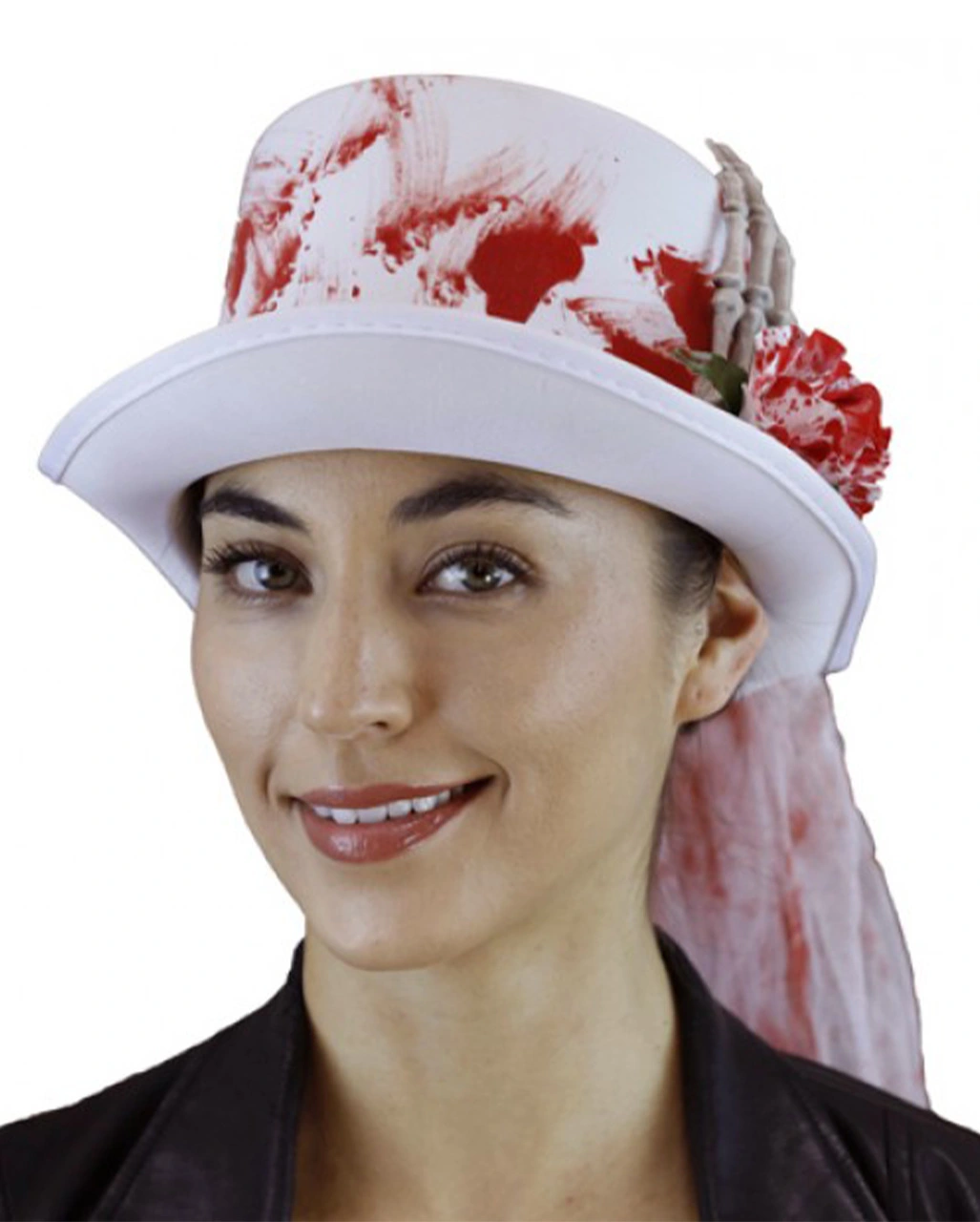 Weißer Hut mit Blutflecken als Kostümaccessoire