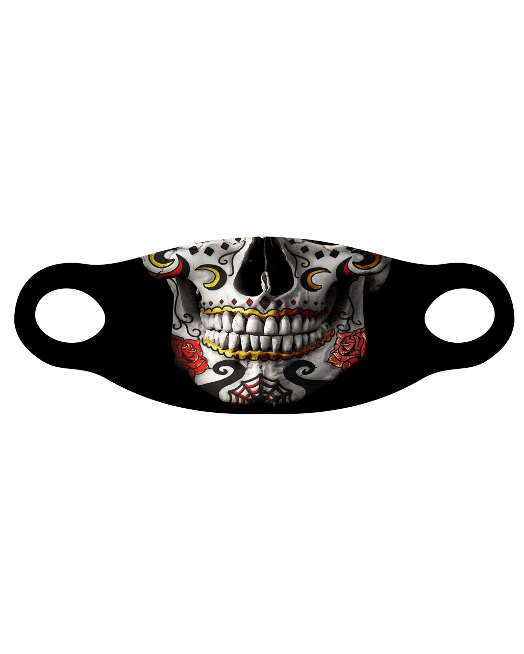 Stimmungsvolle Halloween Alltagsmaske mit klassischen Sugar Skull Motiv, um damit Themen- und Auflagengerecht Halloween zu feiern.