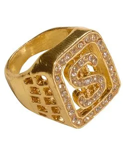 Goldener Ring mit Dollarzeichen als Kostümzubehör für jeden Pimp & Rapper