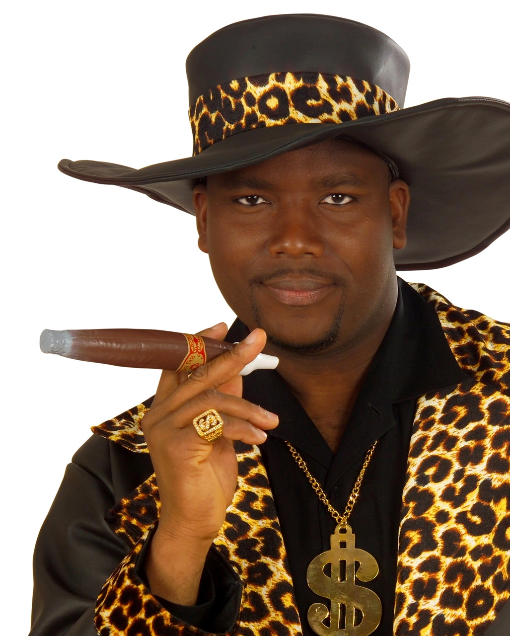 Der Dollar Ring Gold ist aus goldfarbenem Metall und mit über vierzig Strasssteinchen verziert. Der eckige Karnevalsschmuck ist durchbrochen und im Innern des Vierecks prangt das Dollarzeichen. Mit der Disco Afro Perücke Dunkelbraun und der Fette dicke Zigarre und dem Dollar Ring Gold wirst du im handumdrehen zum Macker auf jeder Halloween Party. Dazu noch die Rapper Goldkette und Armband und dein Halloween Kostüm wird zu einer runden Sache.