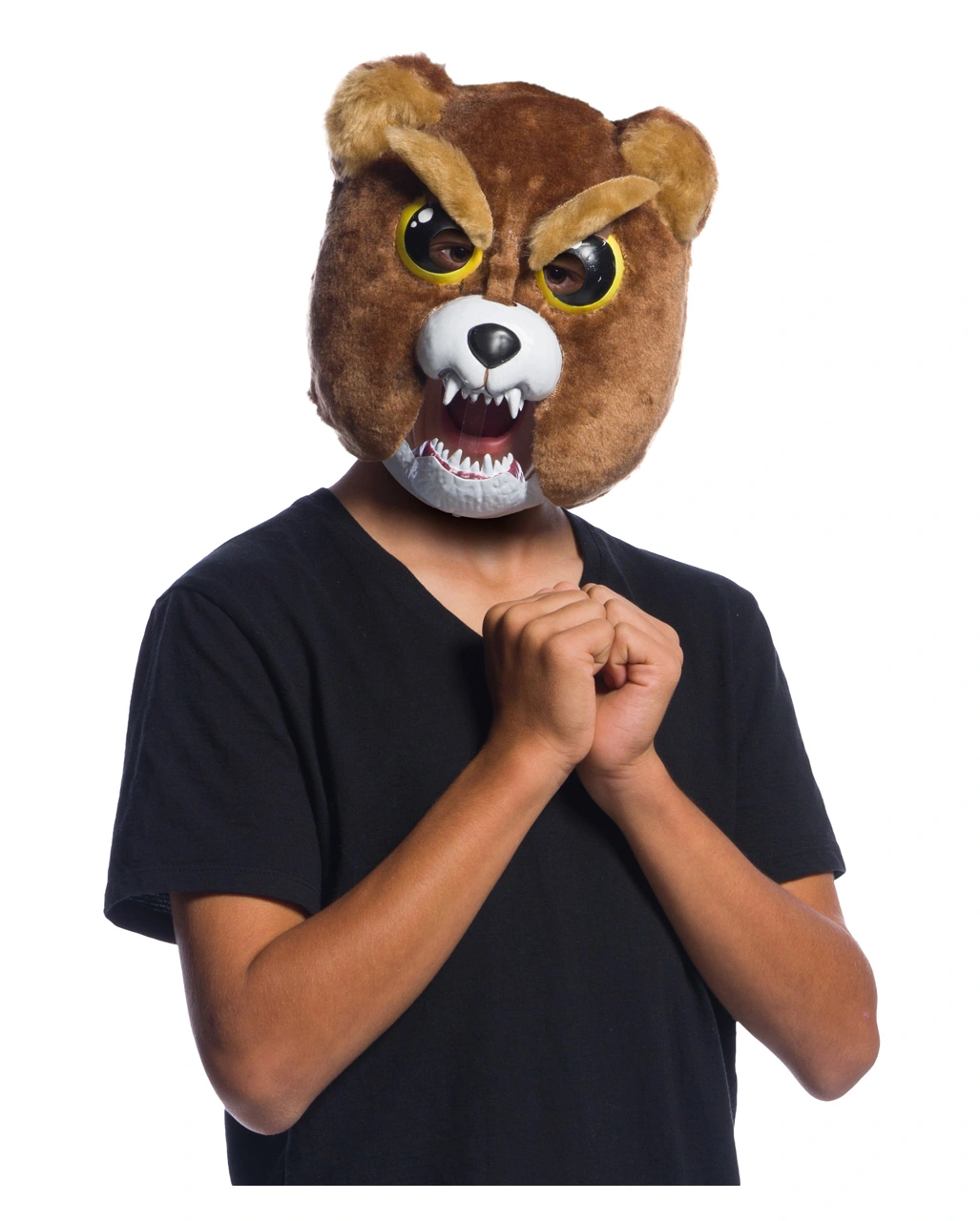 Die Feisty Pets Teddy Maske Sir-Growls-A-Lot besticht durch ihren genialen Schock-Effekt: Mittels beweglicher Kiefer kannst du aus dem knuffigen Teddy in Sekundenschnelle ein reißendes Monster zaubern! Statt der bittend nach oben gezogenen Augenbrauen und des unschuldigen Gesichtsausdrucks der Feisty-Halbmaske blickt den Betrachter plötzlich eine grimmige Miene mit gefletschten Zähnen an! Das flauschige Kunstfell des Kostüm-Accessoires unterstützt die putzige Optik zusätzlich. Dank des Klettverschlusses kannst du die Feisty-Pet-Halbmaske nach Belieben auf die gewünschte Größe einstellen. Dazu passen die Fellpranken Braun und die Killer Wolf Füße braun.