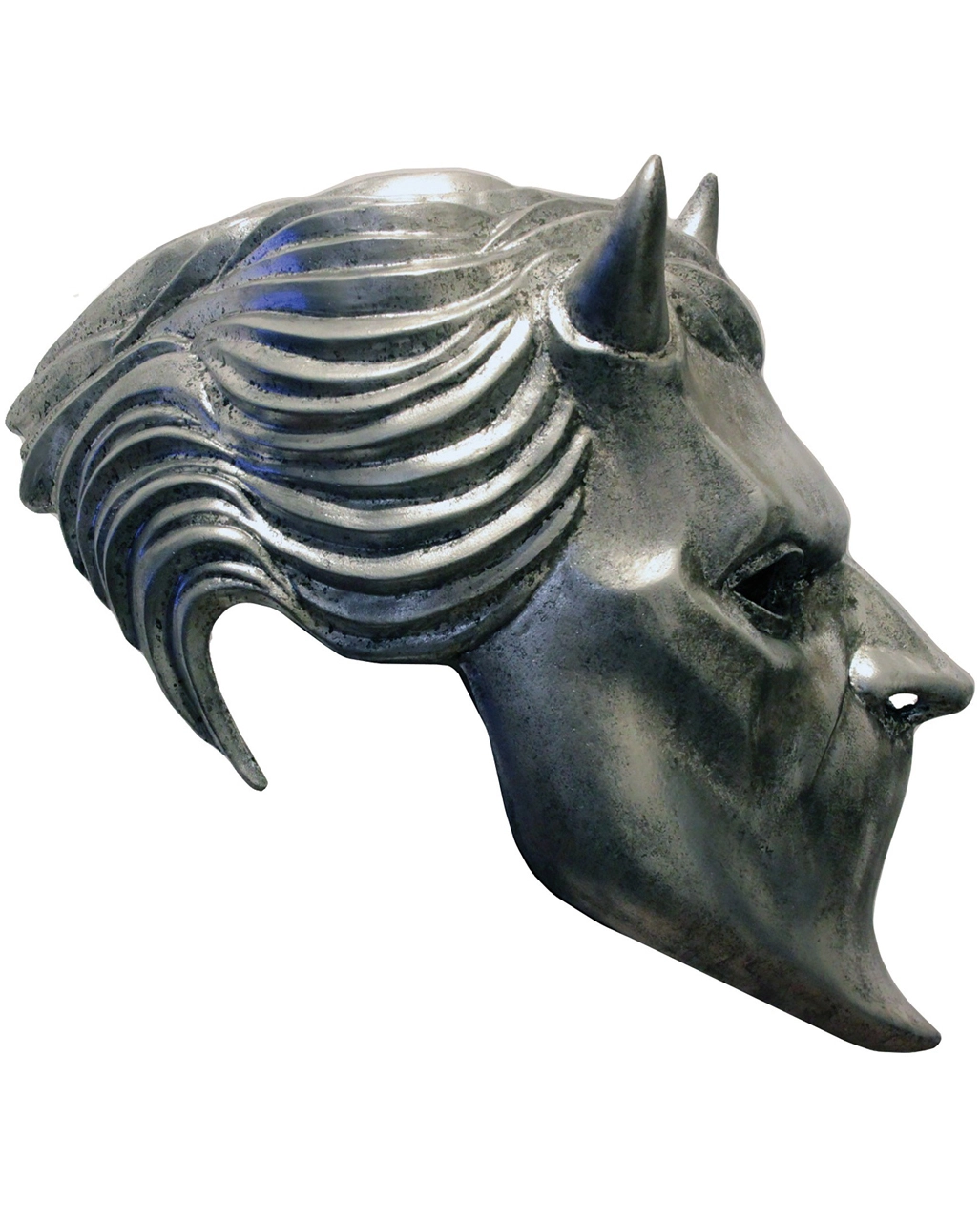 Die Ghost Nameless Ghoul Maske entspricht bis ins Detail der Vorlage der realen Bandmitglieder. Ein dämonischer Kopf mit zwei Hörnern, dunklen Augenhöhlen und einem zugewachsenen Mund verleiht der Horror-Maske ein wahrlich furchterregendes Aussehen. Stilisierte Haare bedecken den Hinterkopf und bilden an den Enden Halbkreise, die du über deine Ohren stecken und auf diese Weise die Ghost-Fanmaske fixieren kannst. Genauso bietet sich aber eine Verwendung des Sammlerstücks als coole Deko an. Noch mehr Metal-Fanartikel wie die Slipknot Maske Paul und die Iron Maiden Piece of Mind Maske findest du ebenfalls bei uns im Horror-Shop.com!