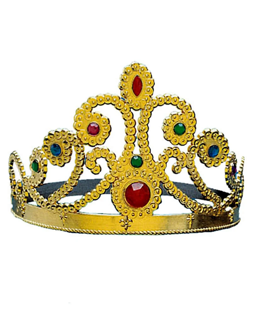 Im Märchen gibt es wie im richtigen Leben gute und schlechte Königinnen, doch eines haben beide gemeinsam, die Krone. Das königliche Zeichen der Macht ist seit jeher das wertvollste Schmuckstück, das eine Königin besitzt. Die goldene Krone mit Edelsteinen ist aus glänzendem Kunststoff, ist mit vielen kleinen Glitzer- Glocken besetzt und zum Abschluss mit großen Edelsteinen verziert.