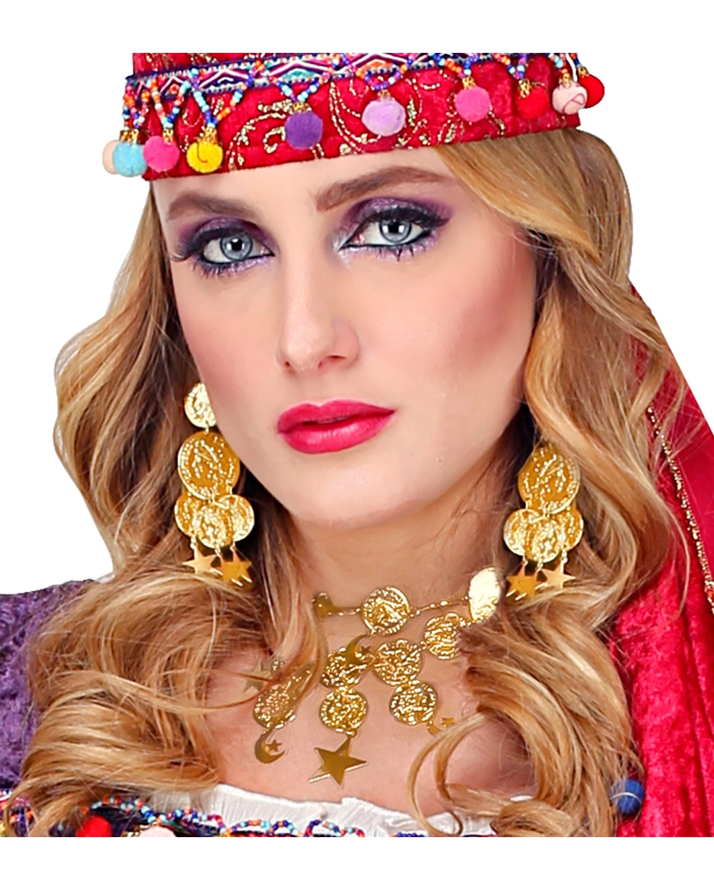 Das goldene Schmuckset Esmeralda macht jedes Wahrsagerinnen-Kostüm perfekt. Als Bezaubernde Hexe Premium Kostüm L und Bauchtänzerin unterstreicht der Karnevals Schmuck deinen Charakter eindrucksvoll. Im Kostüm der Esmeralda beeindruckst du mit dem Kostümschmuck sogar den Glöckner von Notre Dame.