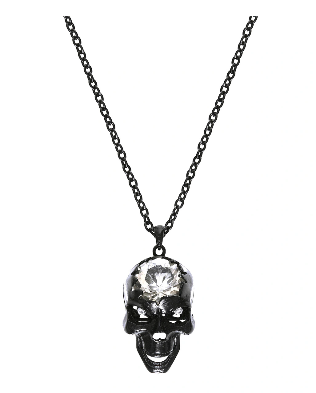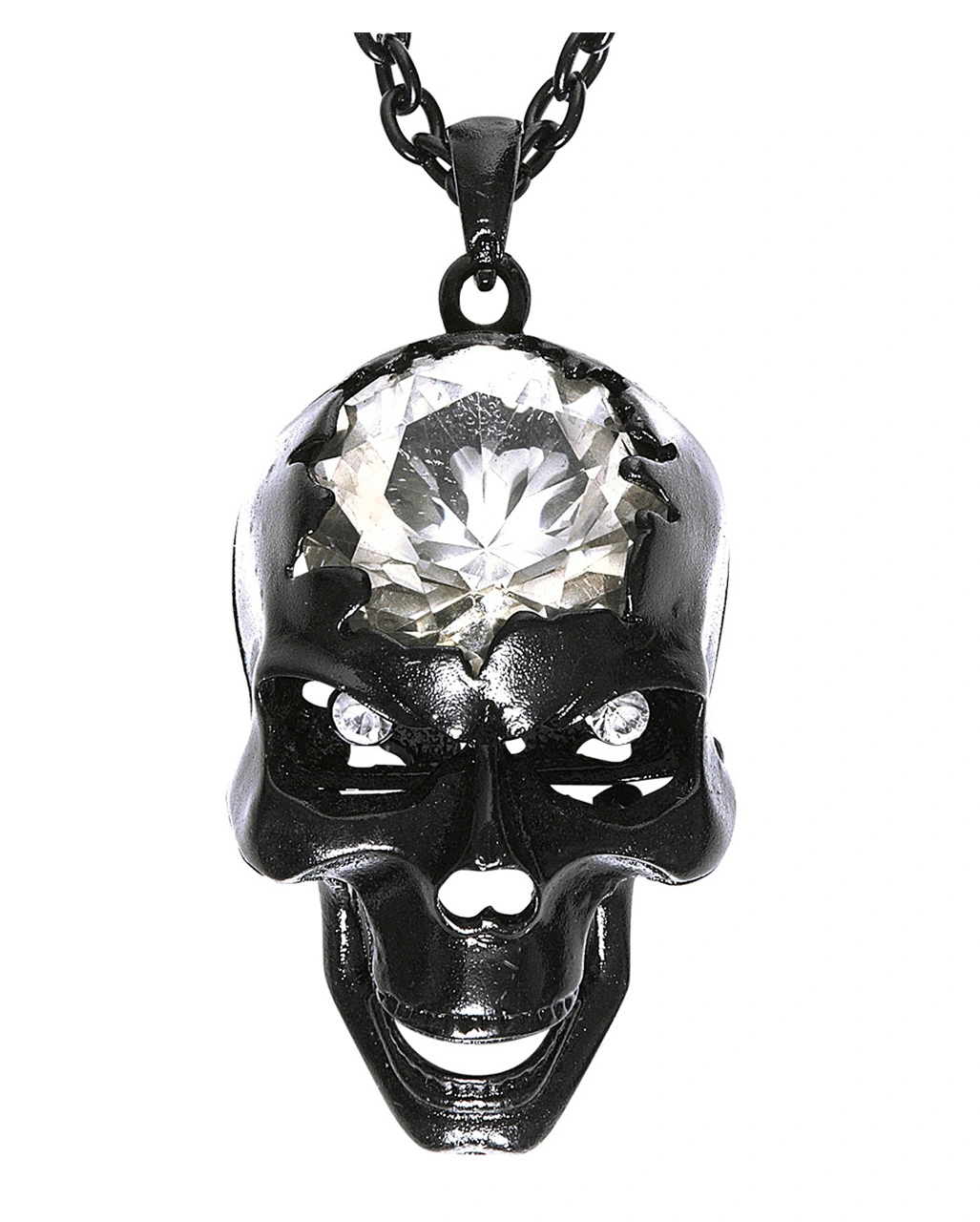Schwarze Totenkopf Kette mit Schmuckstein im Gothic Style