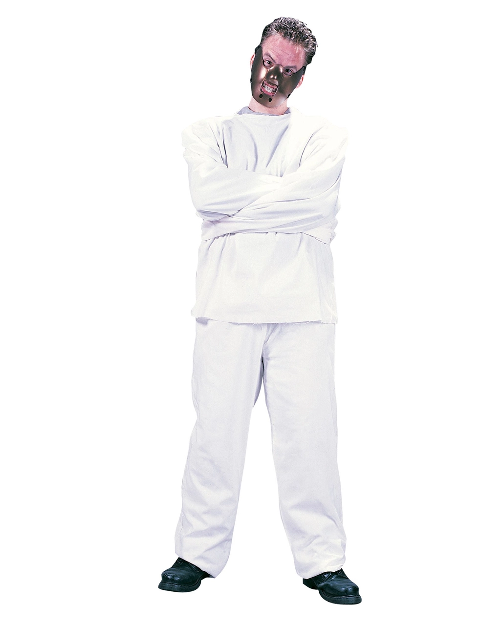 Das Irrenhauskleidungs Kostüm ist für gefangene Serienkiller, Psychopathen oder durchgeknallte Ehefrauen geeignet, die eben mal wie Hannibal Lecter, fein frühstücken wollten. Das geniale Halloween Kostüm besteht aus einem weißen Oberteil im Stil einer Zwangsjacke mit langen Ärmeln, die auf dem Rücken fixiert werden können, einer weißen Hose und dem obligatorischen Beißschutz, wie ihn schon Hannibal Lecter in der Irrenanstalt getragen hat!