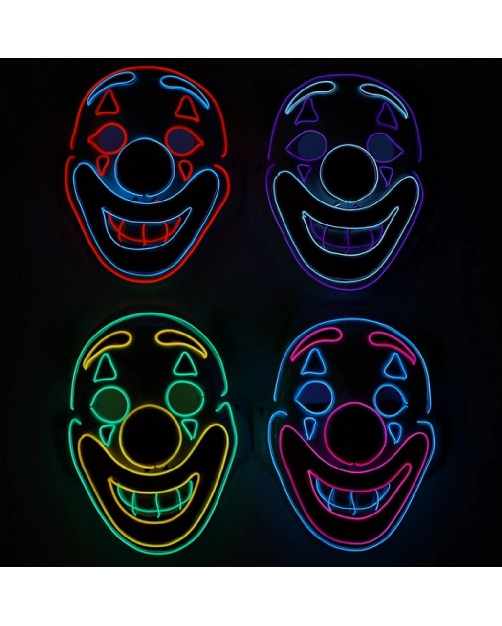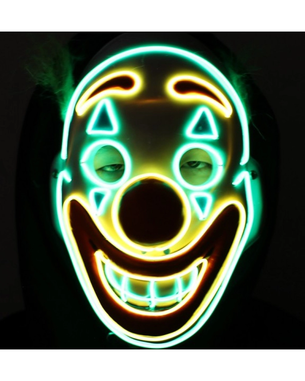 Diese LED String Clown Maske zeichnet sich durch leuchtende Elemente aus. Die Gesichtszüge eines unheimlichen Clowns sind hier mit bunten LED-Strings unterlegt. Als LED-Kostümzubehör lässt sich die leuchtende Maske vielseitig kombinieren. Verkleide dich doch als unheimlicher Killerclown oder als futuristischer Zirkusclown. Weiteres Zubehör findest du in unserem Shop.