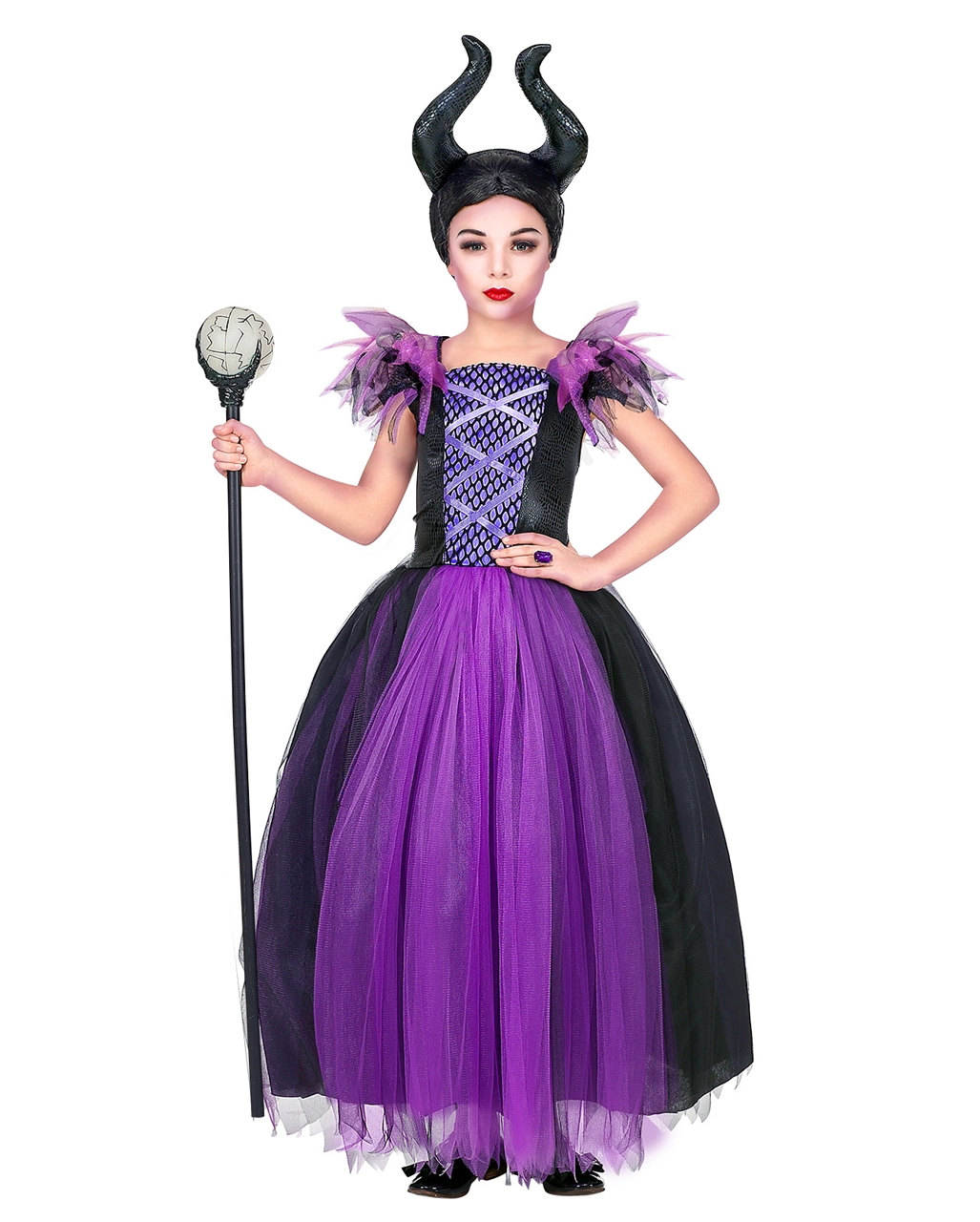 Lieferumfang: 1 x Malefizia Kinderkostüm mit Kopfschmuck
