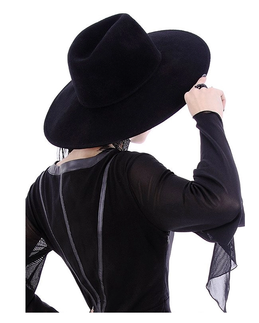 Der moderne Hexenhut im Fedora Style begleitet dich in die Neuzeit des Okkultismus und der Wicca-Zauberei. Moderne Hexen haben den ehemaligen spitzen Hexenhut gegen einen modernen Hexenhut im Fedora Style mit breiter Krempe eingetauscht. Unser schwarzer Hut aus Wollfilz ist eine tolle Ergänzung für jedes Gothic-Outfit oder einfach ein schwarzes, anspruchsvolles Modeaccessoire.