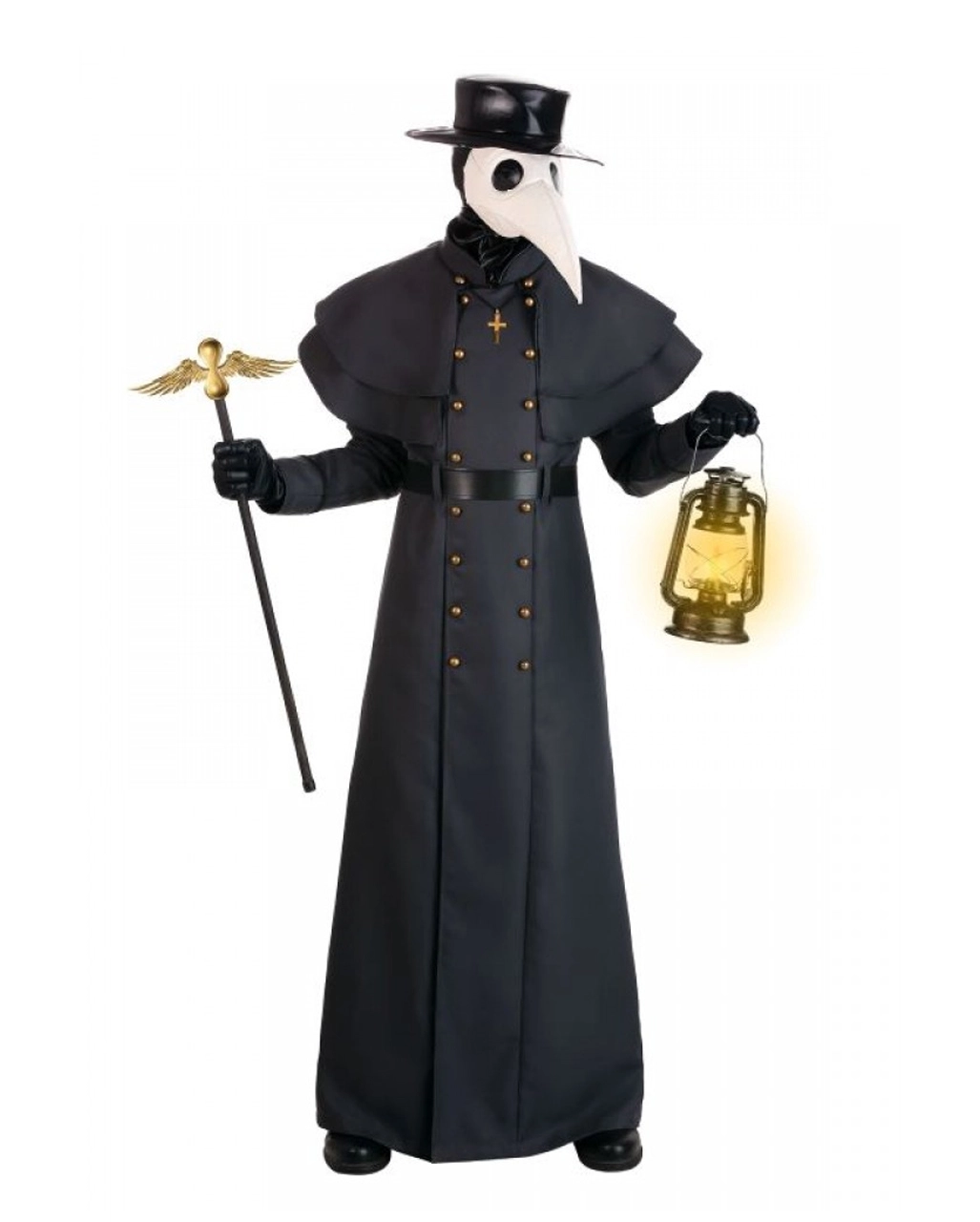 Unser Pest Doktor Hut Schwarz ist ein Kostümaccessoire mit Geschichte. Im 17. Jahrhundert liefen die Ärzte mit besonderem Zubehör herum, um die Pest Kranken auf Abstand zu halten. Neben der Schnabelmaske war es auch der breite schwarze Hut mit Krempe, der zur Ausstattung des Dr. Pest gehörte. Unser schwarzer Kostümhut ist diesem perfekt nachempfunden worden. Trage den Pestarzt Kostüm Hut zusammen mit der unheimlichen Pest Doktor Schnabelmaske , wenn du an Halloween rausgehst.