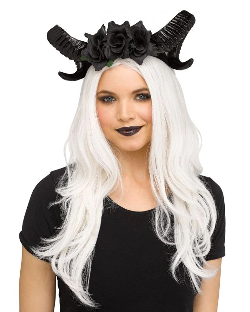 Die Schwarze Dämonen Hörner mit Rosen verwandeln dich in eine dunkle Schönheit voller Magie und Anmut. Du bist nichts weniger als eine düstere Fee, in deren Brust ein romantisches Herz schlägt. Der Zauber, der von deinem Halloween Kopfschmuck ausgeht, macht dich zum betörend schönen Blickfang auf der nächsten Halloween oder Gothic Party.