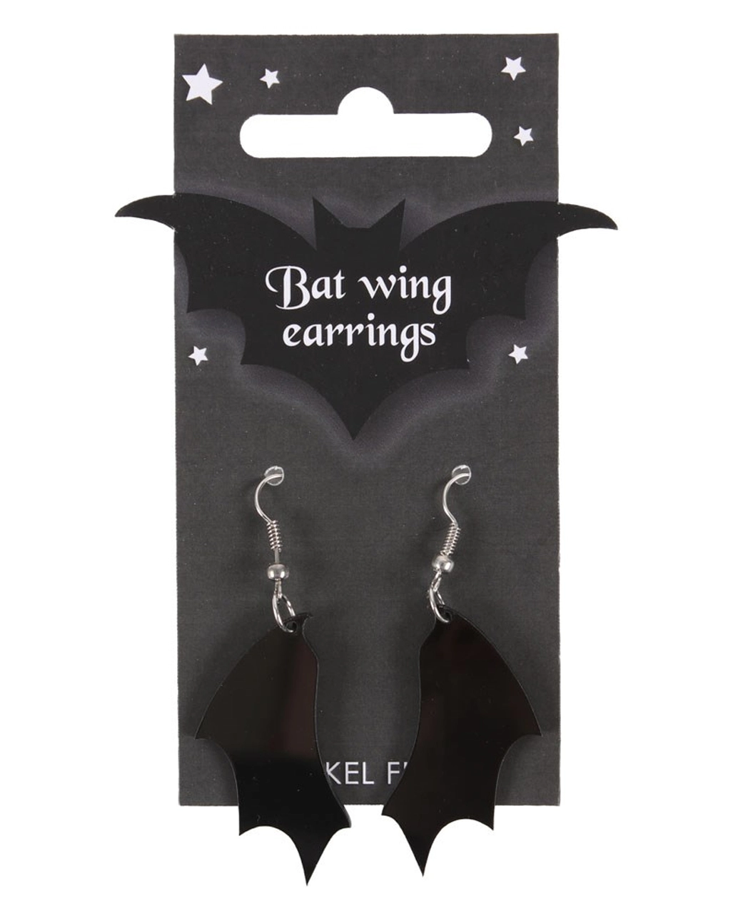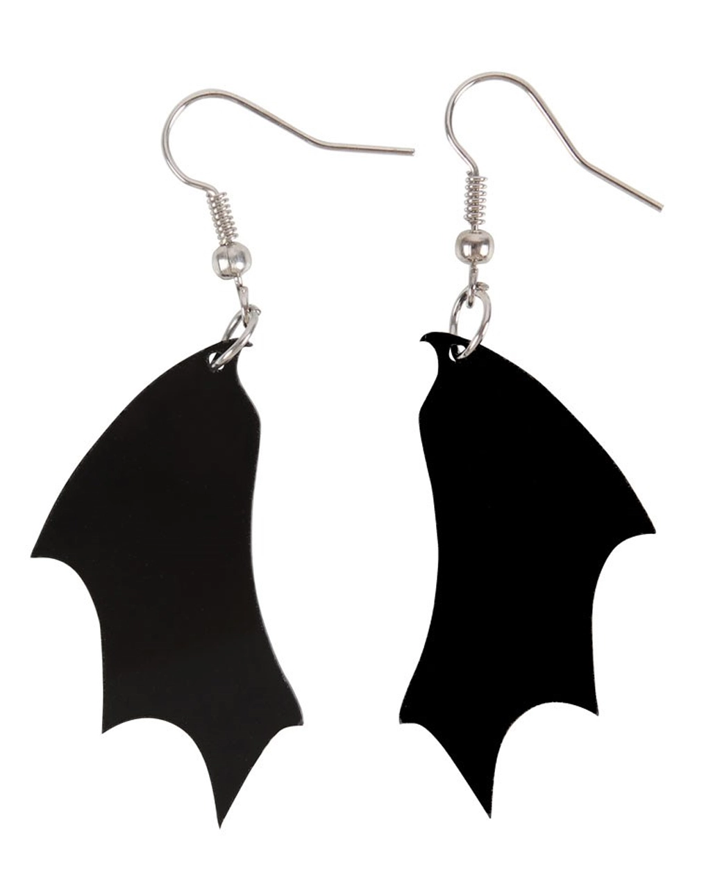 Bestelle dir jetzt die ausgefallenen Fledermausflügel Ohrringe für deine Kuriositäten Schmucksammlung. Die schwarzen Fledermausflügel sind aus Acryl gefertigt, während die Ohrringhaken aus nickelfreiem Metall gearbeitet sind. Wunderbar um diese selber zu behalten, aber auch ein tolles Geschenk für Liebhaber von Gothic-Geschenkartikeln.
