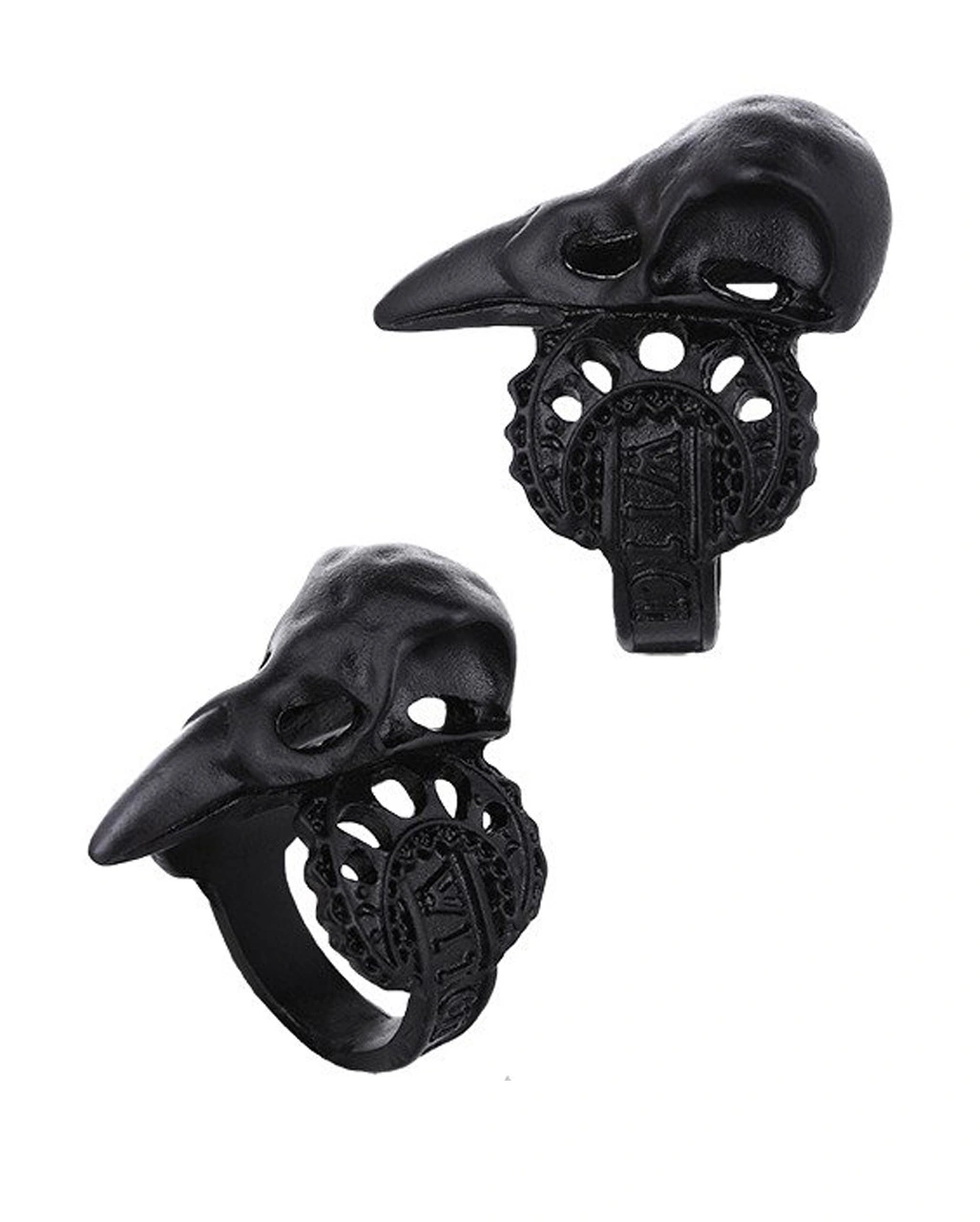 - Schwarz, matter Fingerring mit Rabenschädel als Motiv