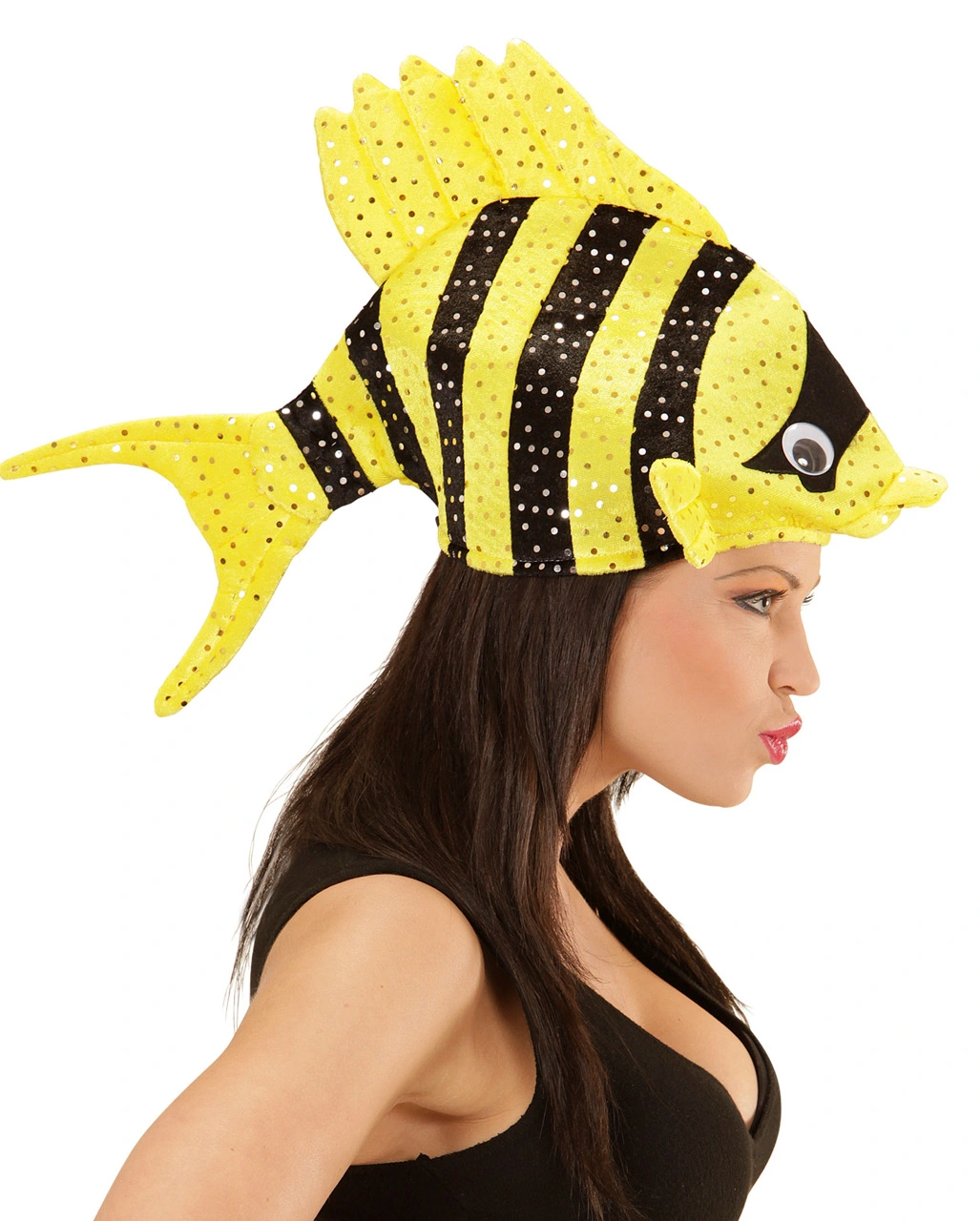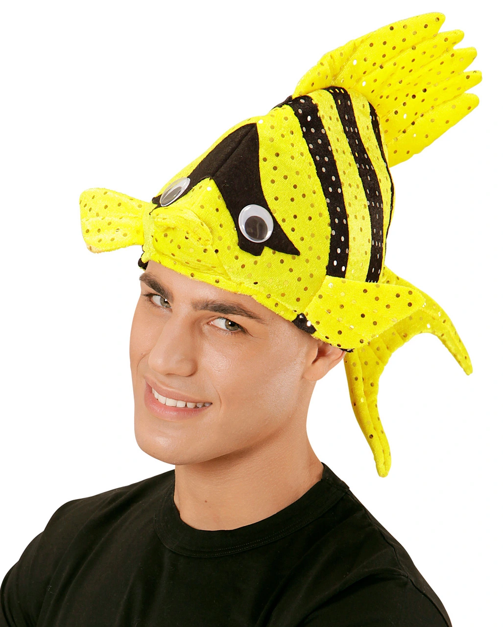 In der Lieferung kommt ein tropischer Fischhut Gelb in Einheitsgröße für Erwachsene. Der schwarz-gelbe Fisch hat silberne Pailletten die seine Schuppung darstellen, 2 niedliche Augen und Flossen. Der gelbe Hut mit Fisch ist aus weichem Material und hochwertig verarbeitet. Trage ihn zu Sommerfestivals, Fasching, Halloween oder sonstigen Kostümevents. Weitere coole Ideen für lustige Partyhüte findest du in unserem Onlineshop. Dort wartet auch der witzige Tintenfisch Hut orange auf dich.