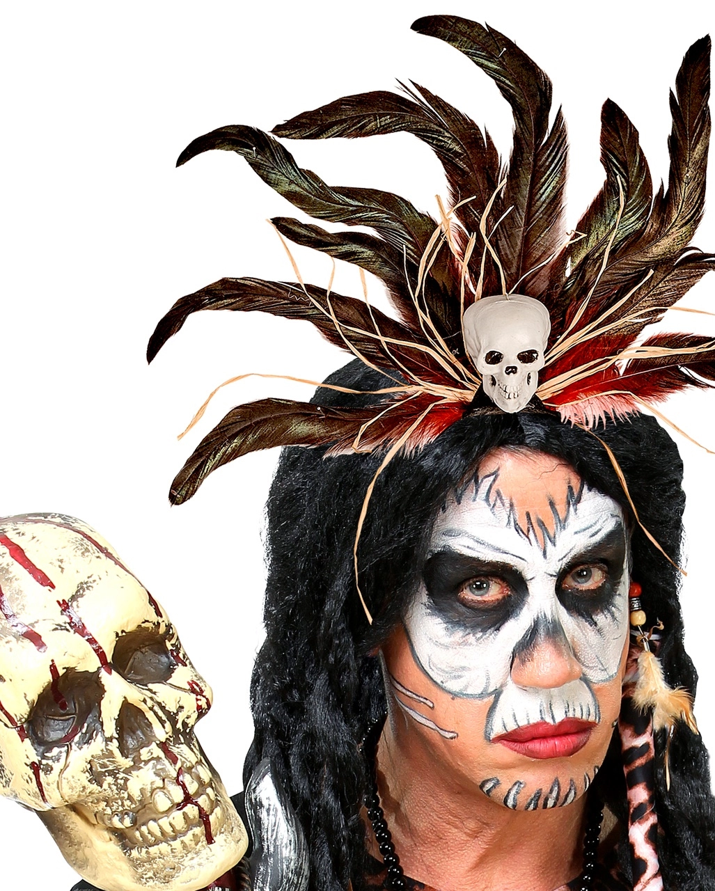 Eindrucksvoller Voodoo Kopfschmuck mit Federn für Sie & Ihn