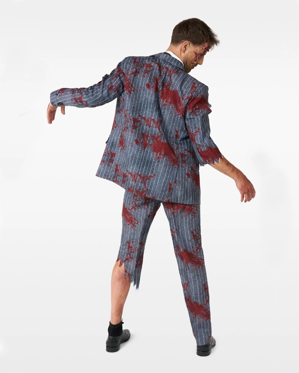 Du bist zu einem Hirnfressenden Zombie mutiert, aber willst dennoch Stilsicher auftreten? Dann ist der Grey Zombie Anzug von Suitmeister die beste Wahl. Blutig und zerschlissen aber dennoch Nadelstreifen schaffen den perfekten Zombie Gentleman.